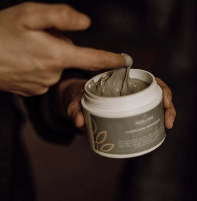 Composition : Huile de ricin**, oxyde de zinc*, eau de mer*, argile verte**, huiles essentielles 100% pures et naturelles** (MELALEUCA QUINQUENERVIA OIL, EUCALYPTUS GLOBULUS LEAF OIL, CITRUS LIMON ZEEL OIL, THYMUS HUILE DE FLEUR DE ZYGIS)