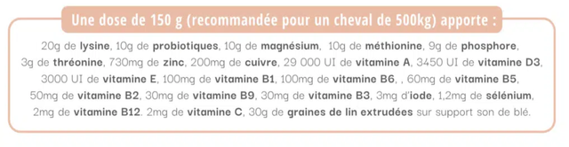 Quand le cheval travaille en intensité, ses besoins explosent. Ce complément minéral et vitaminé équilibre la ration pour soutenir l'ensemble des structures de l'organisme : os, tendons, ligaments, articulations, pieds, muscles. Il aide à optimiser les performances, à prolonger leur longévité et à réduire considérablement le risque de blessure.